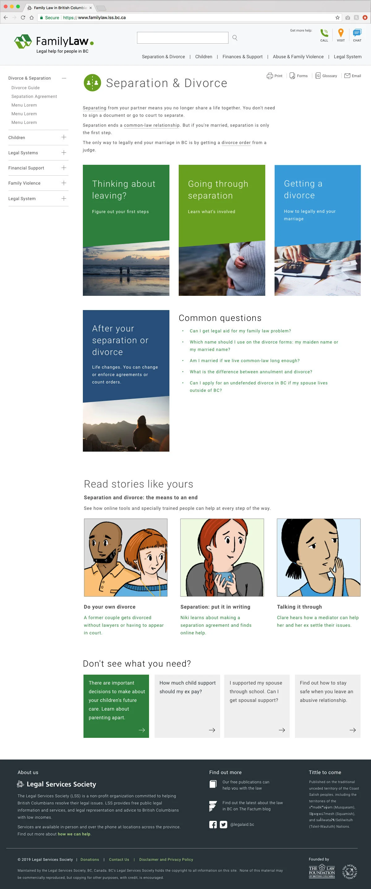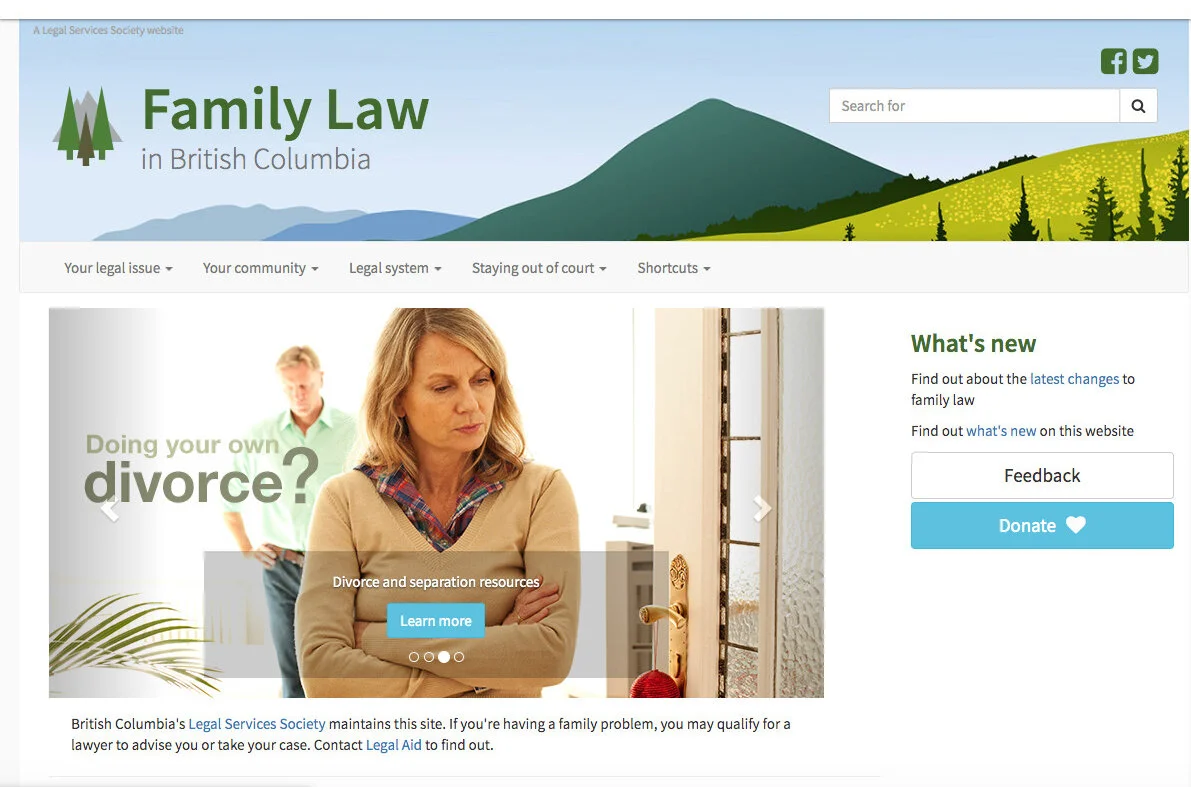 Designed a new logo for the family law website, symbolizing two houses moving in different directions, the green mountains of BC, and a final dot representing resolution and the conclusion of the problem.